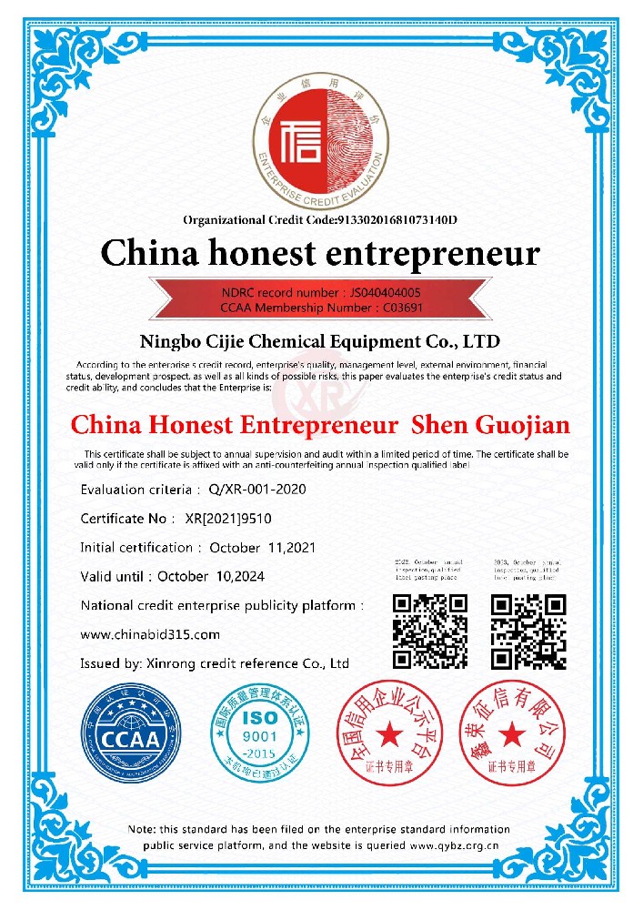 宁波市慈洁化工设备有限公司经过多年的艰苦创业及各界用户及科研单位的支持,从建厂初20几人的小厂,发展到100多人的民营企业,现有厂区面积8000多平方米,厂房面积5500多平方米,下设注塑车间、 冲压车间、备有注塑机冲床50余台套,规整填料金属线2条(套),规整填料塑料线1条(套),