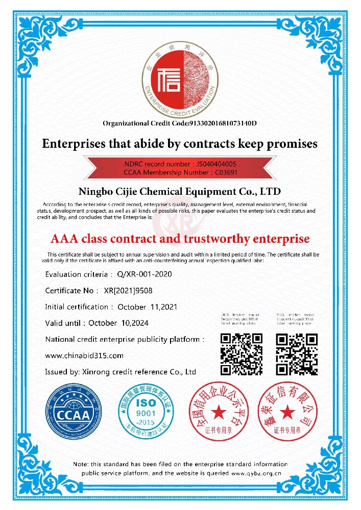宁波市慈洁化工设备有限公司经过多年的艰苦创业及各界用户及科研单位的支持,从建厂初20几人的小厂,发展到100多人的民营企业,现有厂区面积8000多平方米,厂房面积5500多平方米,下设注塑车间、 冲压车间、备有注塑机冲床50余台套,规整填料金属线2条(套),规整填料塑料线1条(套),